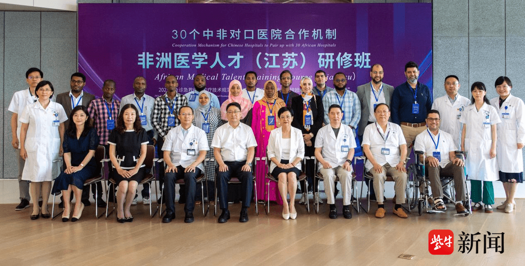 25日上午,30个中非对口医院合作机制·非洲医学人才(江苏)研修班在江苏省人民医院(南京医科大学第一附属医院)正式开班!16名来自桑给巴尔基文吉区医院、查克查克医院和埃及艾因夏姆斯大学医院的学员将在江苏进行为期十天的培训,部分骨干学员将进行最长90天的学习,主要内容包括学习急诊急救综合诊疗技术和消化内镜超级微创技术。