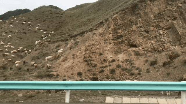 到山脚下的时候,还能看到路边成群的牛羊十分悠闲地走过。