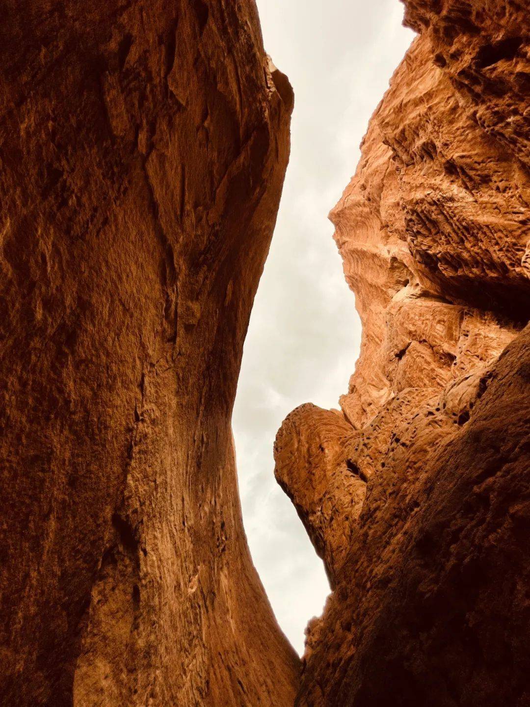 南段一路延展到南疆库车,途径天山神秘大峡谷和大小天池,跟北段又是截然不同的景观。天山神秘大峡谷有着直冲云霄的红褐色山峦,烈日之下犹如火焰,深入谷中,峰回路转,窄的地方只能一人经过,惊险又神秘。