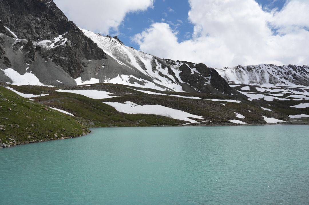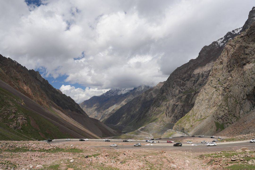 从那拉提到乔尔玛这段,一路景色都很绝,有很多连绵不绝的绿山坡,顶上还积着雪!经常还能看到骑山地车和摩托的旅人经过。