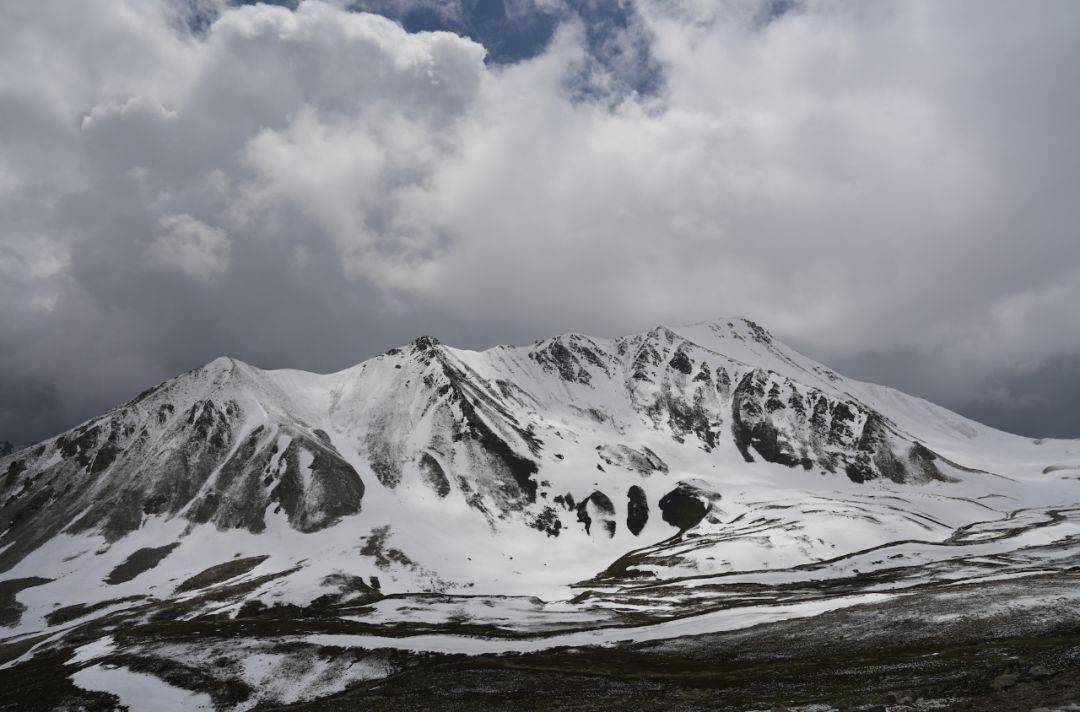 这里山高岭峻,终年积雪,山顶上形式各样的冰斗、冰碛、冰湖奇观历历可见。