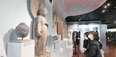游客在洛阳博物馆内参观龙门石窟流散文物数据聚合成果专题展。张怡熙摄(人民图片)