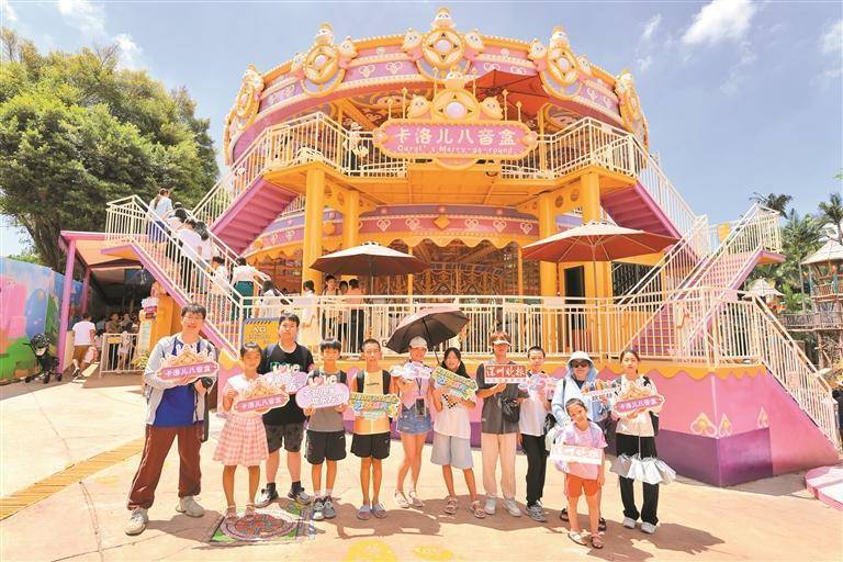 ▲粉丝在欢乐谷体验“卡洛儿八音盒”后合影留念。 深圳晚报记者 陈玉 实习生 钟文尧 黄浩伦 摄