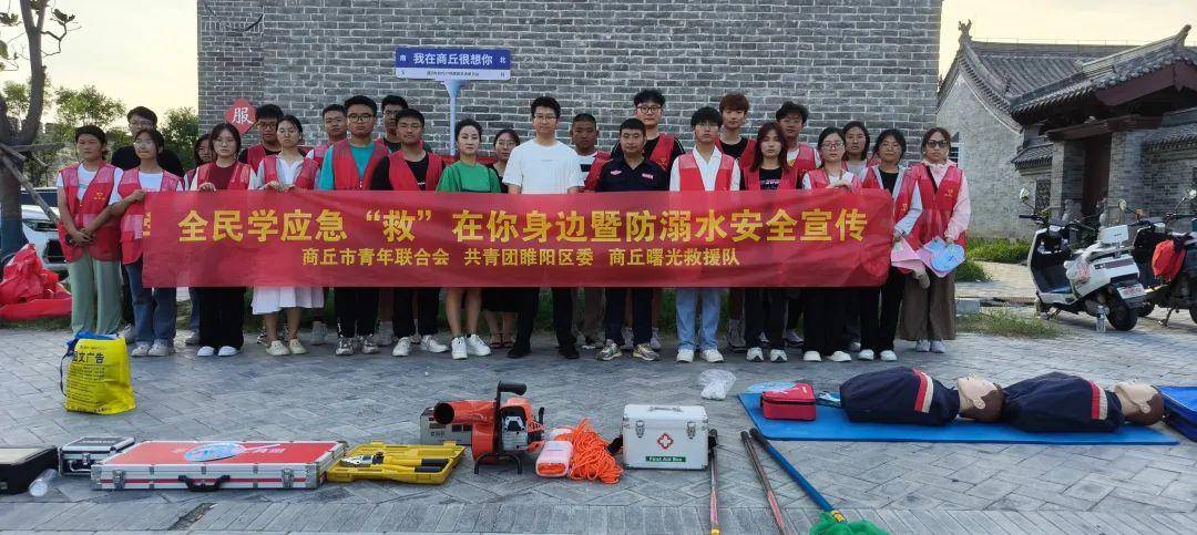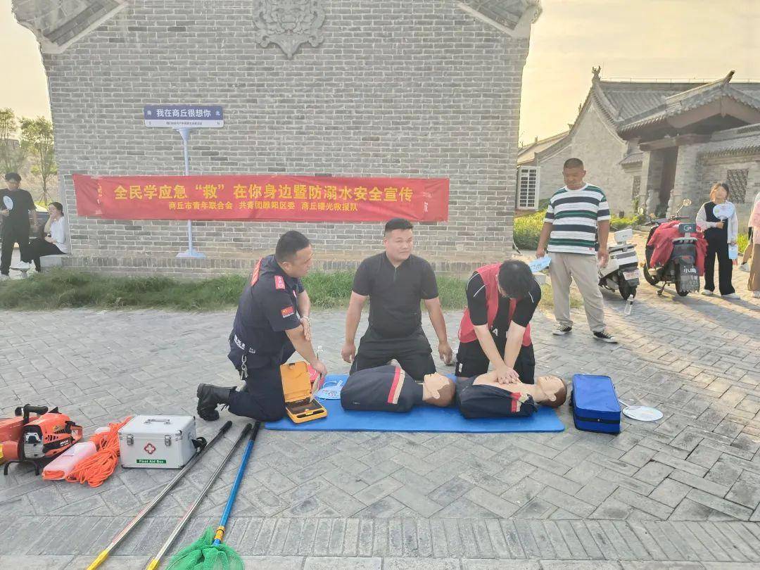 在7月25日世界预防溺水日来临之际,7月24日下午,在商丘古城景区南湖附近,商丘市青年联合会、共青团睢阳区委、商丘曙光救援队联合开展防“溺”于未然“救”在你身边暨防溺水安全宣传进景区活动。