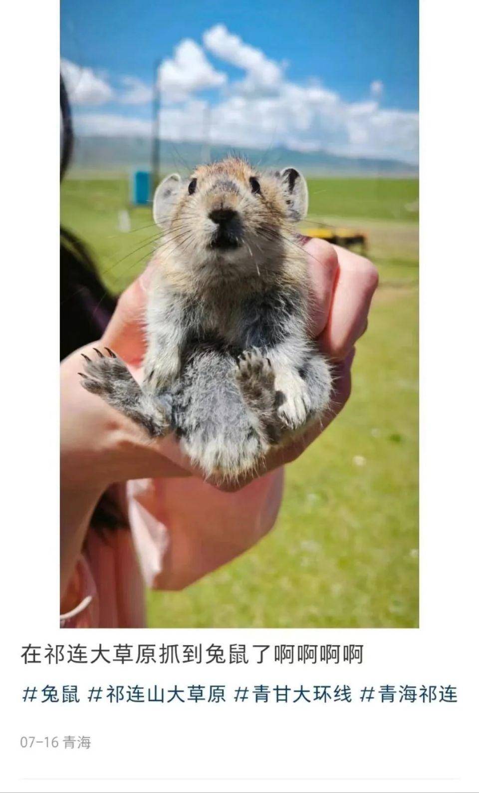 在前述帖子中,有游客称,自己在祁连大草原抓到鼠兔了,还有人表示,鼠兔很可爱。