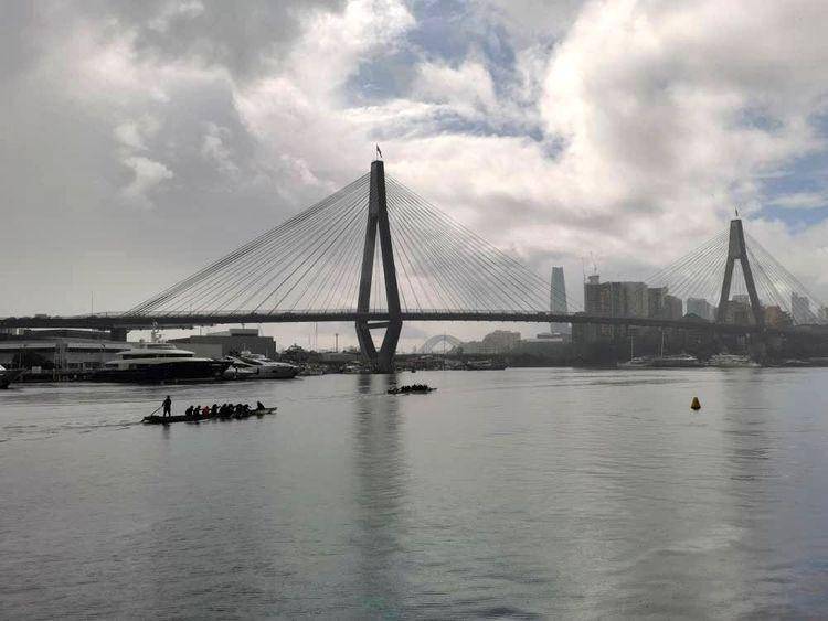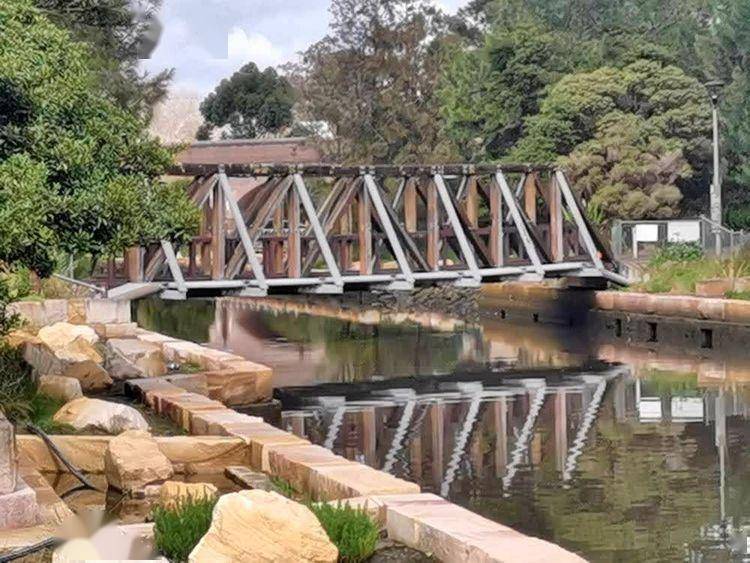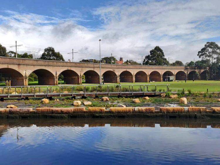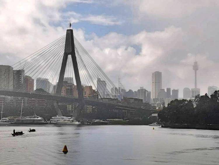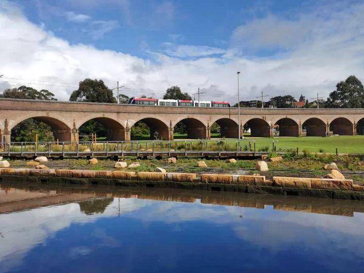 沿着河边,可以看到Anzac Bridge 澳新军团大桥,一路上都是平整的大路,很适合小孩徒步,或者骑车,或者滑板车。