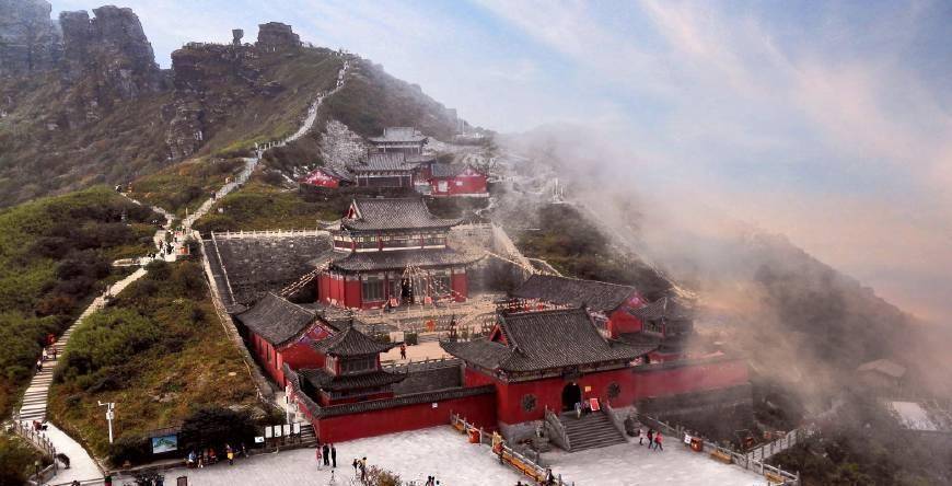 此外,梵净山上还有红云金顶。在高度超过100米的山头上,金顶陡然耸立,看上去十分醒目。在金顶上建有大小两个寺庙,让人有种误入仙山宝地的感觉。
