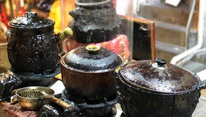 这家隐藏在巷子深处,且面积不大,装修简陋的猪脚姜店,其实很有来历,其一,它是广州第一家专门做猪脚姜的店铺,其二,它不仅是《舌尖上的中国》中一期的主人公,还登上了香港旅游杂志的榜单,除此之外,它还拥有几个吸人眼目的包浆砂锅和一个23年没有洗过,包浆厚重的如古董的瓦煲文物,所以它才在众多的店铺中一跃而起,成为了本地身负盛名的美食店铺。