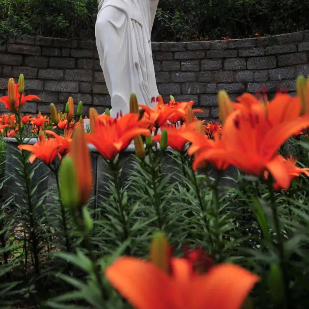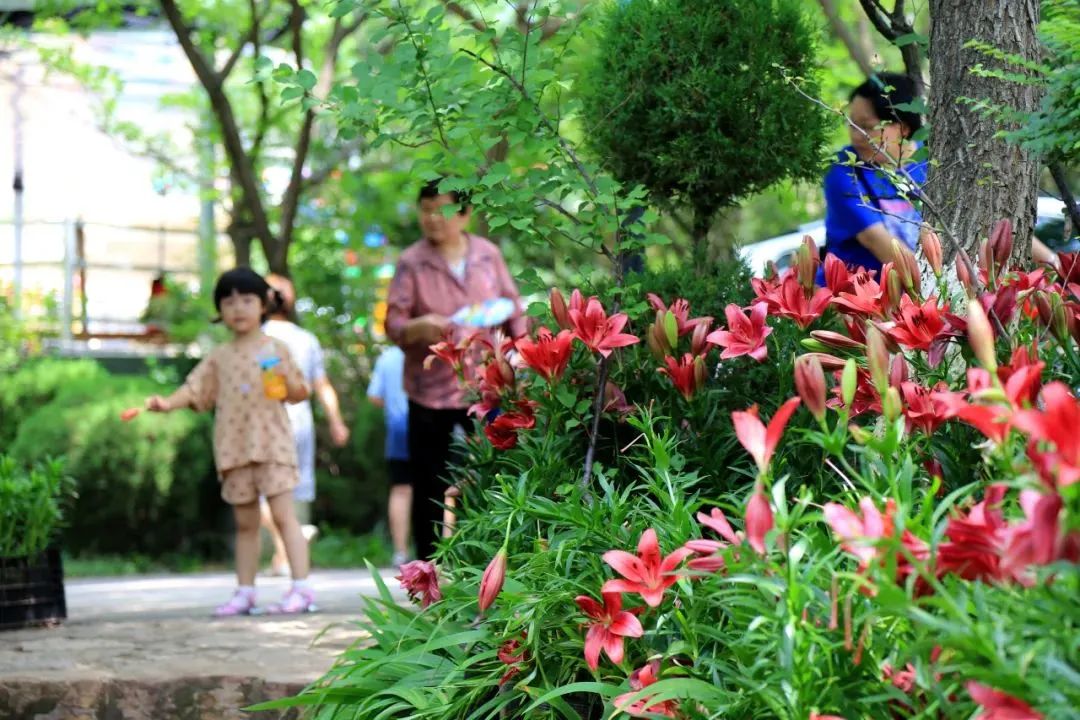 走在石头小道上,两侧是一簇簇婀娜多姿的花朵,镶嵌在一片翠绿之中,相映成趣。粉嫩的百合花向路过的人展示着自己的美丽,未盛开的花苞娇羞的像一个个小姑娘,羡慕着其他花朵的艳丽。