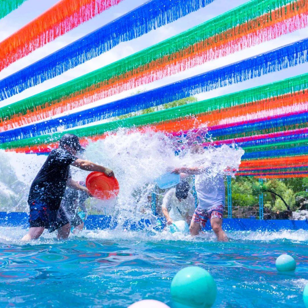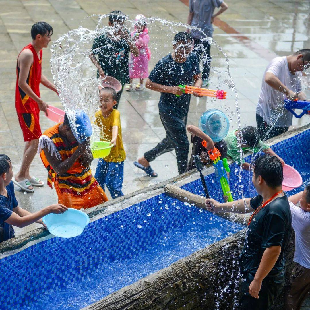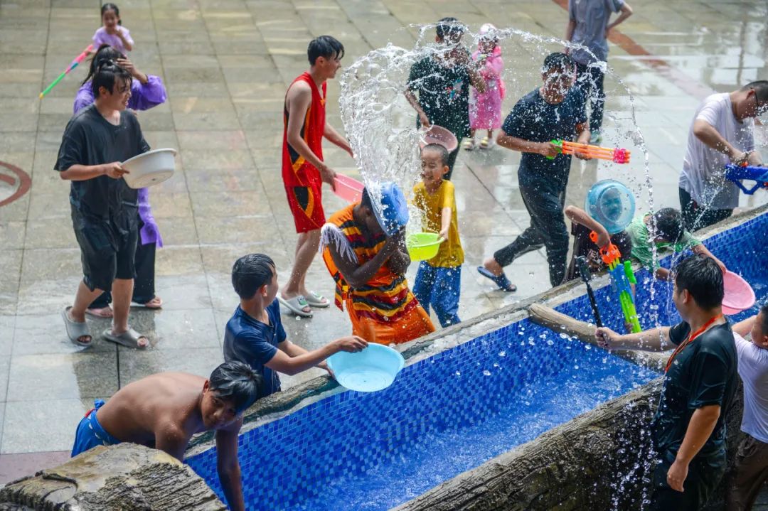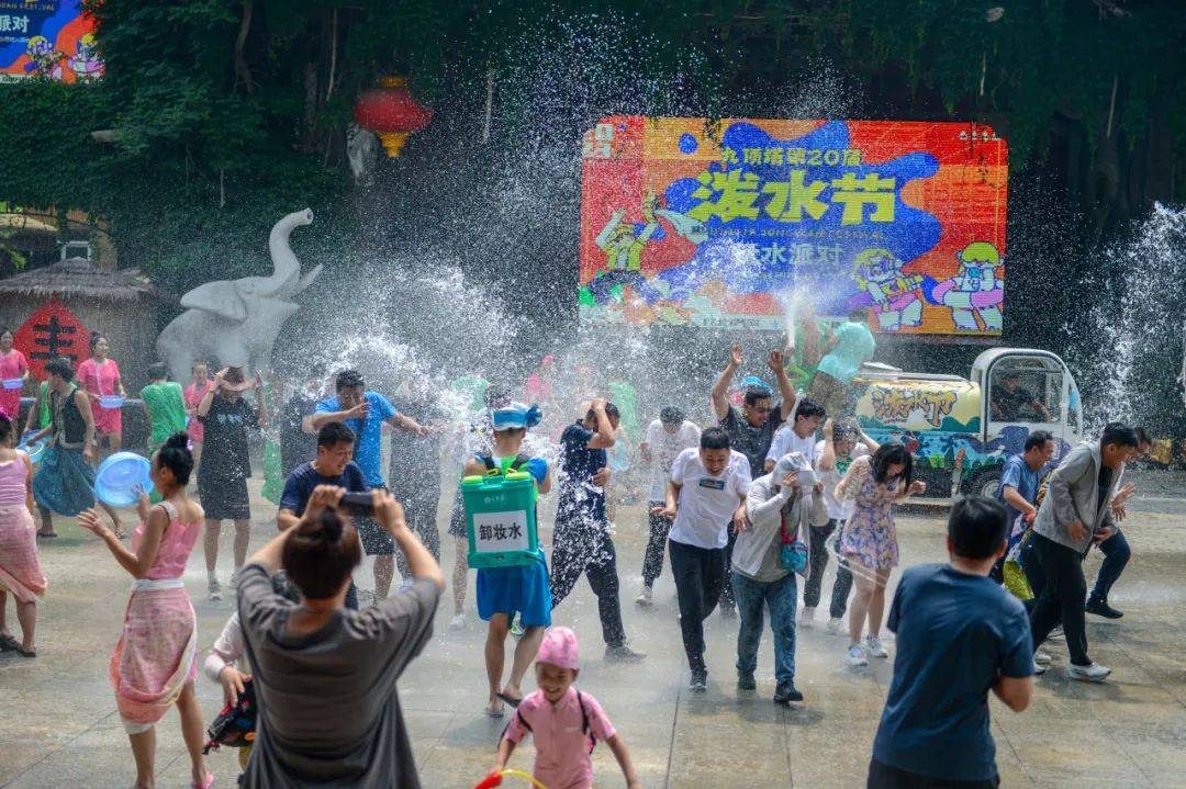 水枪、水车、水球……九顶塔泼水Party中应有尽有。和傣族姑娘小伙来一场泼水大战,冲走夏日的燥热,在尖叫中把烦恼抛在脑后。
