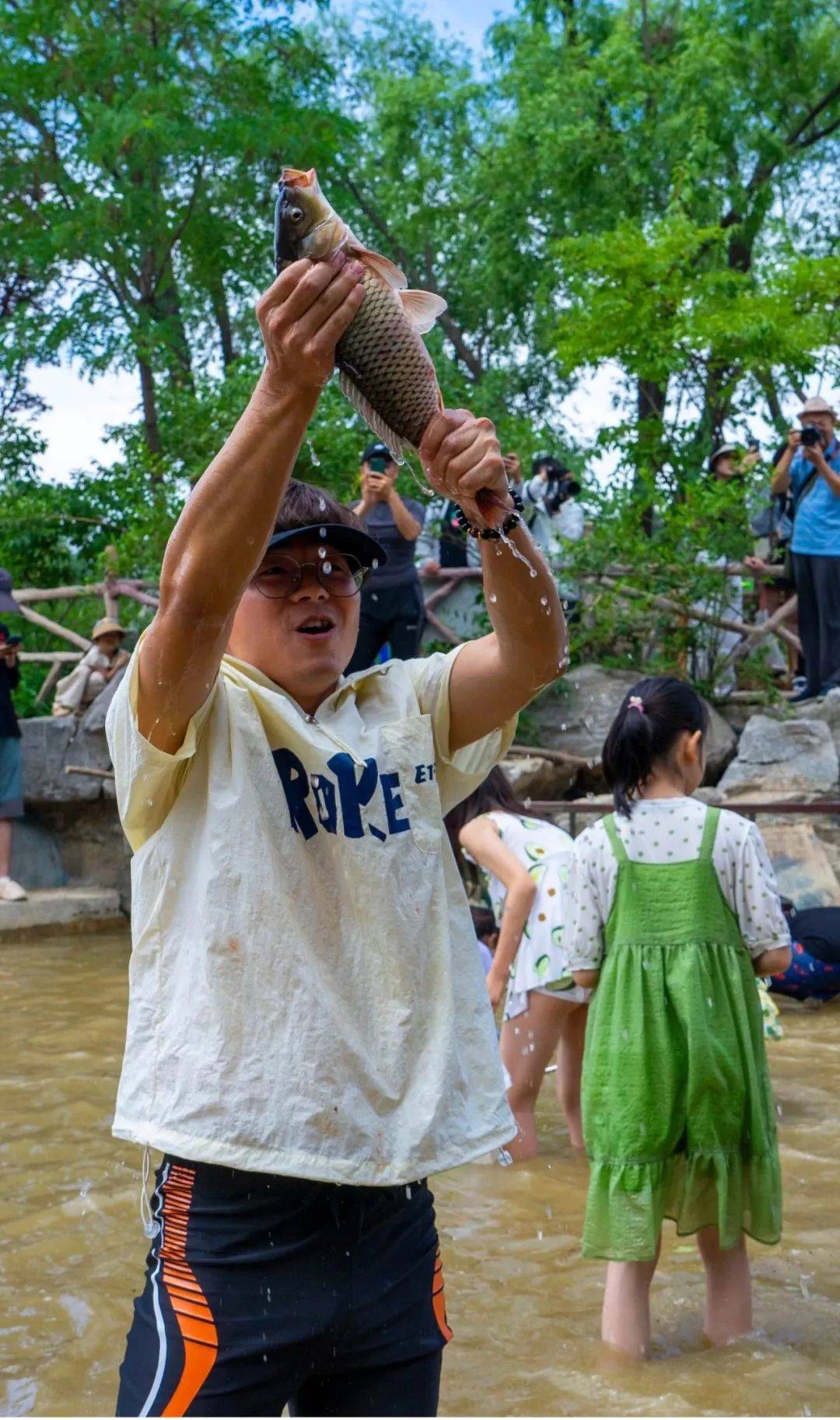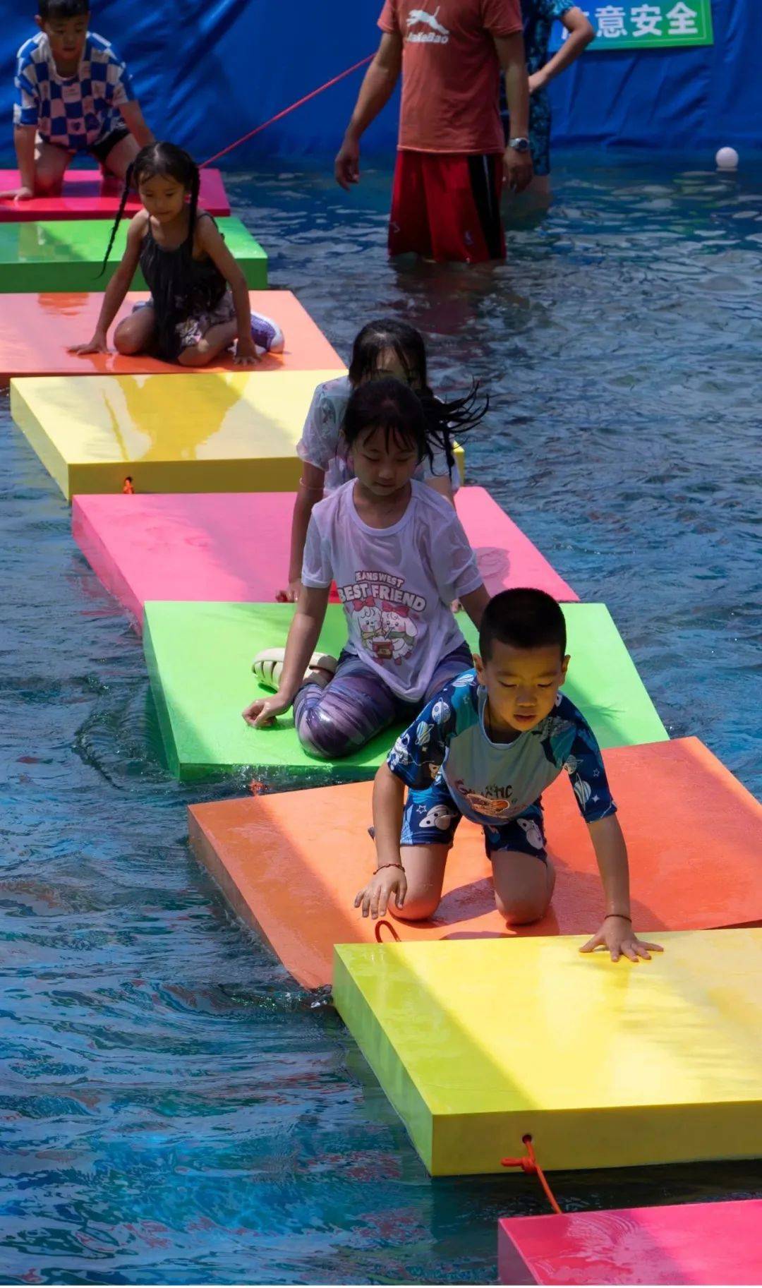 水池里清澈见底,大朋友小朋友们打成一片,在打闹的过程中将夏日闷热一扫而光。