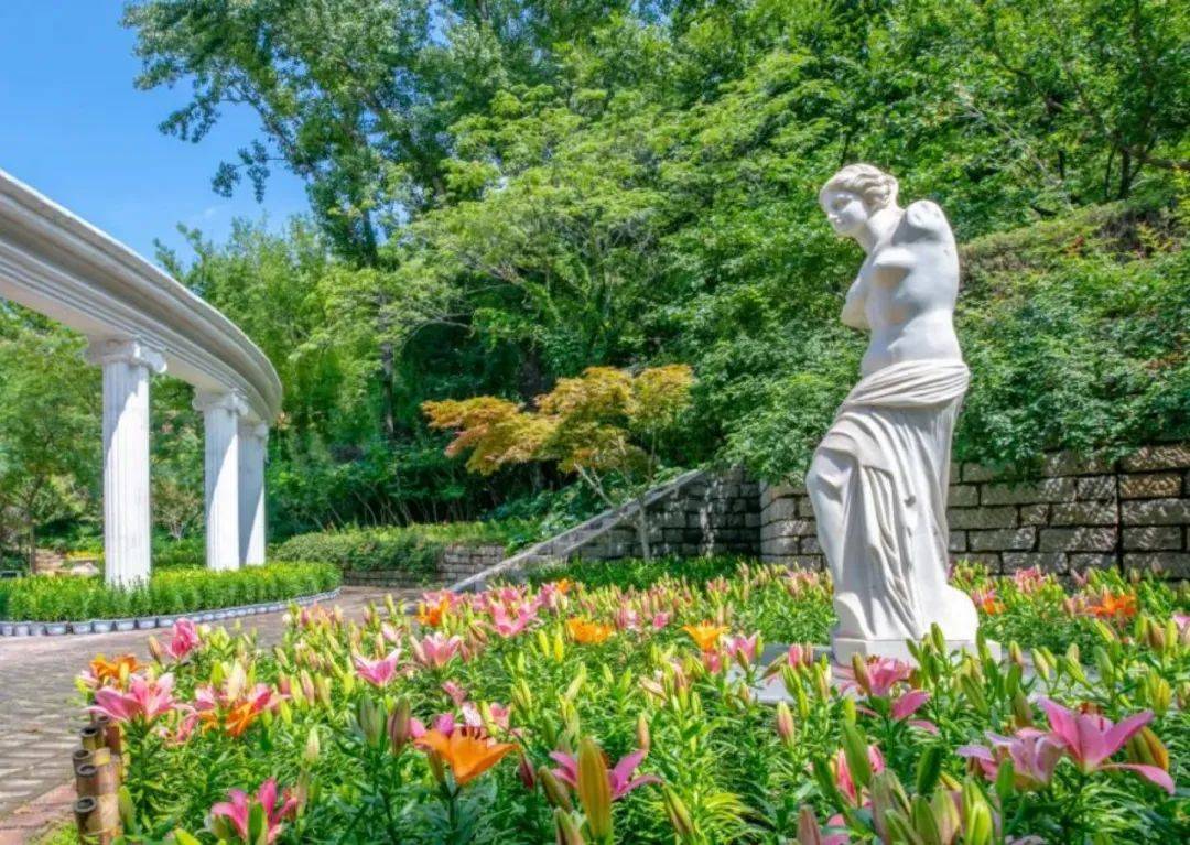 富有艺术感的雕塑,在花朵的拥簇下超有氛围感,好似那童话世界一般,化身爱丽丝,让心情如同百合般盛开。