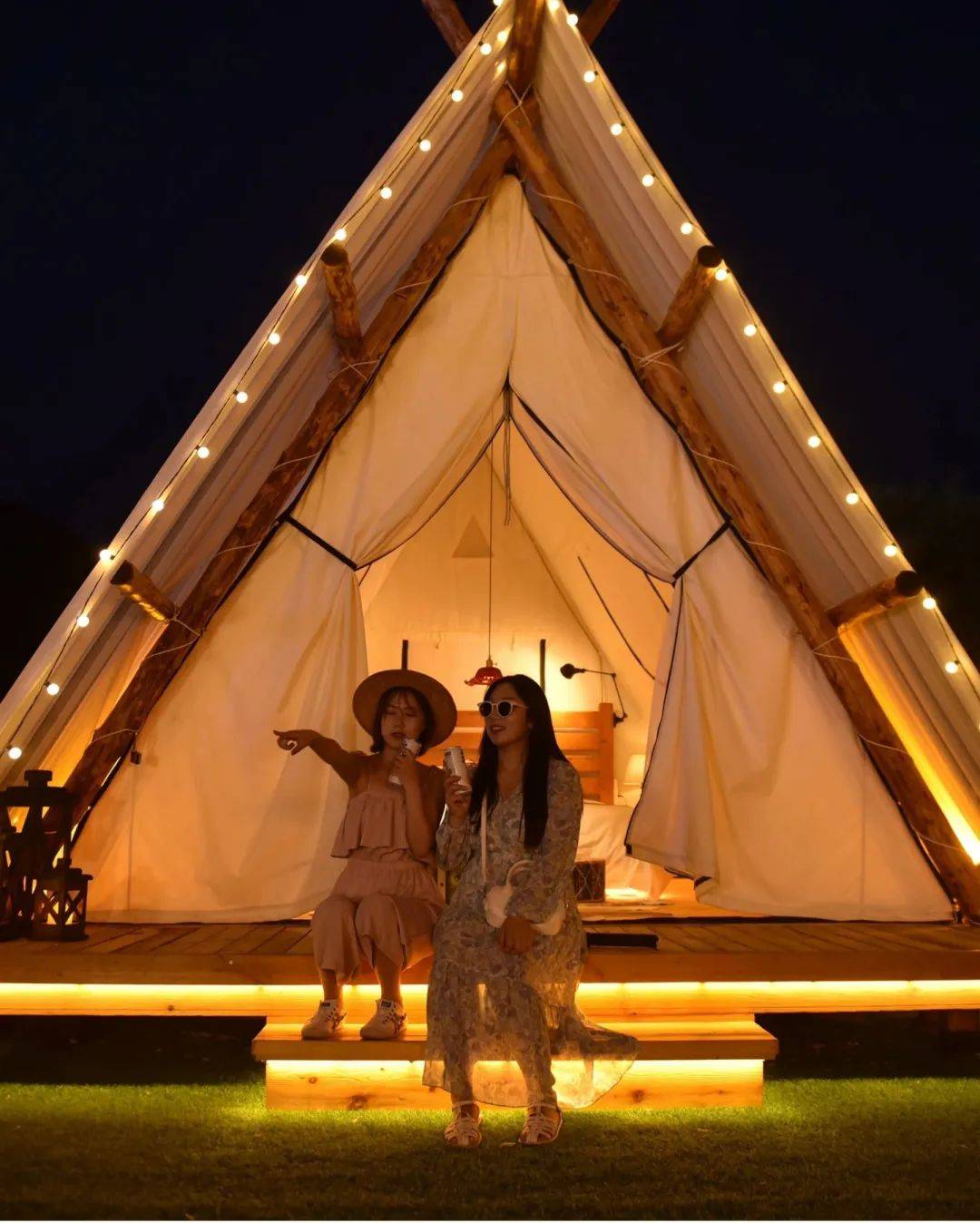 营地依山傍水,周围一片郁郁葱葱,微风拂过,凉爽无比,伴着天边的晚霞,坐在山野之间,寻找属于自己的浪漫。