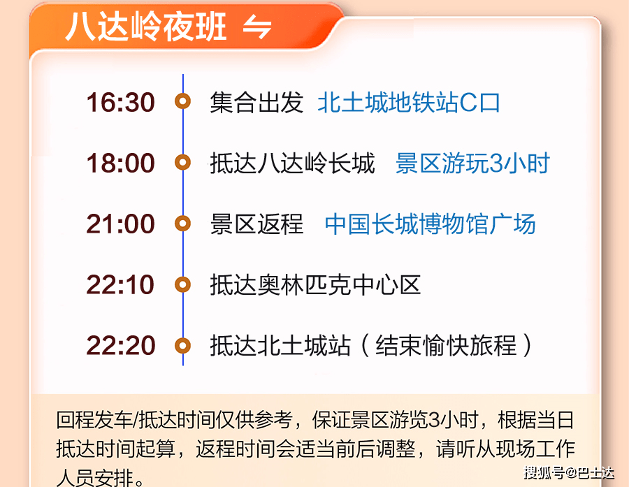 夜游巴士线路避开了北京的高温天气,让游客在更凉爽舒适的夜晚游玩长城。巴士达直通车选用的都是正规的豪华空调旅游大巴,每辆车都配有专业随车导游同行,在大巴上讲解景区的基本情况和游览路线,随时为游客解答问题,还可以帮助游客预订门票、缆车票等票务,完全无需提前买门票。