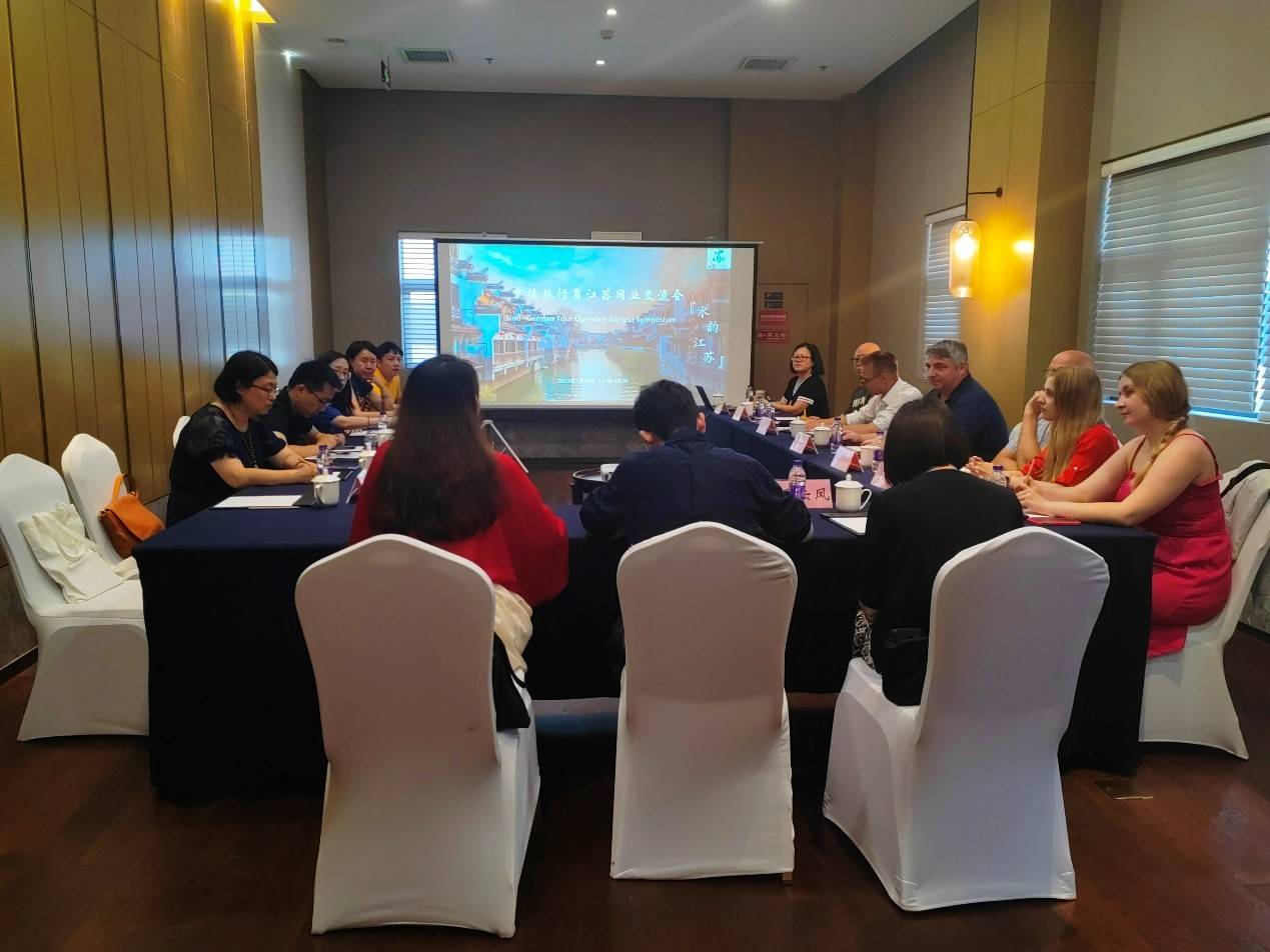 在考察结束后,由江苏省文化和旅游厅组织由省文旅厅和南京市文化和旅游厅及江苏本地旅行商代表与德国旅行商代表开展针对江苏入境旅游合作的座谈会。