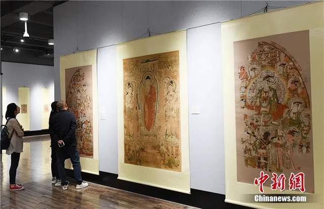 2019年4月,90余幅敦煌莫高窟藏经洞流失海外书画文物复制品在兰州西北师范大学展出吸引民众。杨艳敏 摄