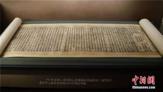 流失英国的敦煌藏经洞《金刚经》。图为在中国展出的复制品。郭海鹏 摄