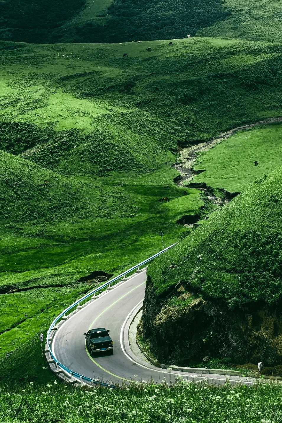 自驾车可以直接驶入景区,沿着山间公路曲折前行,一路上都是绝美风光~