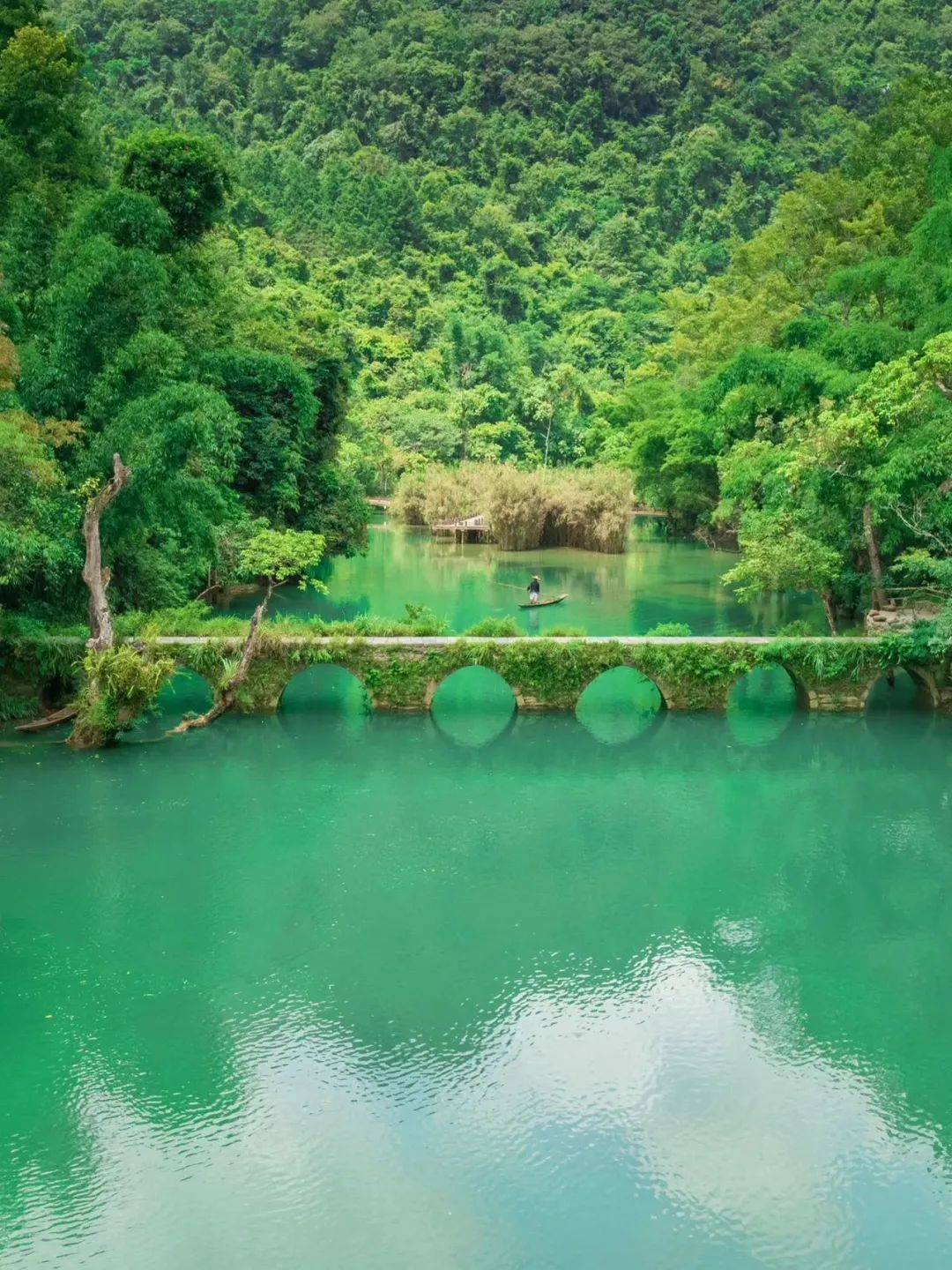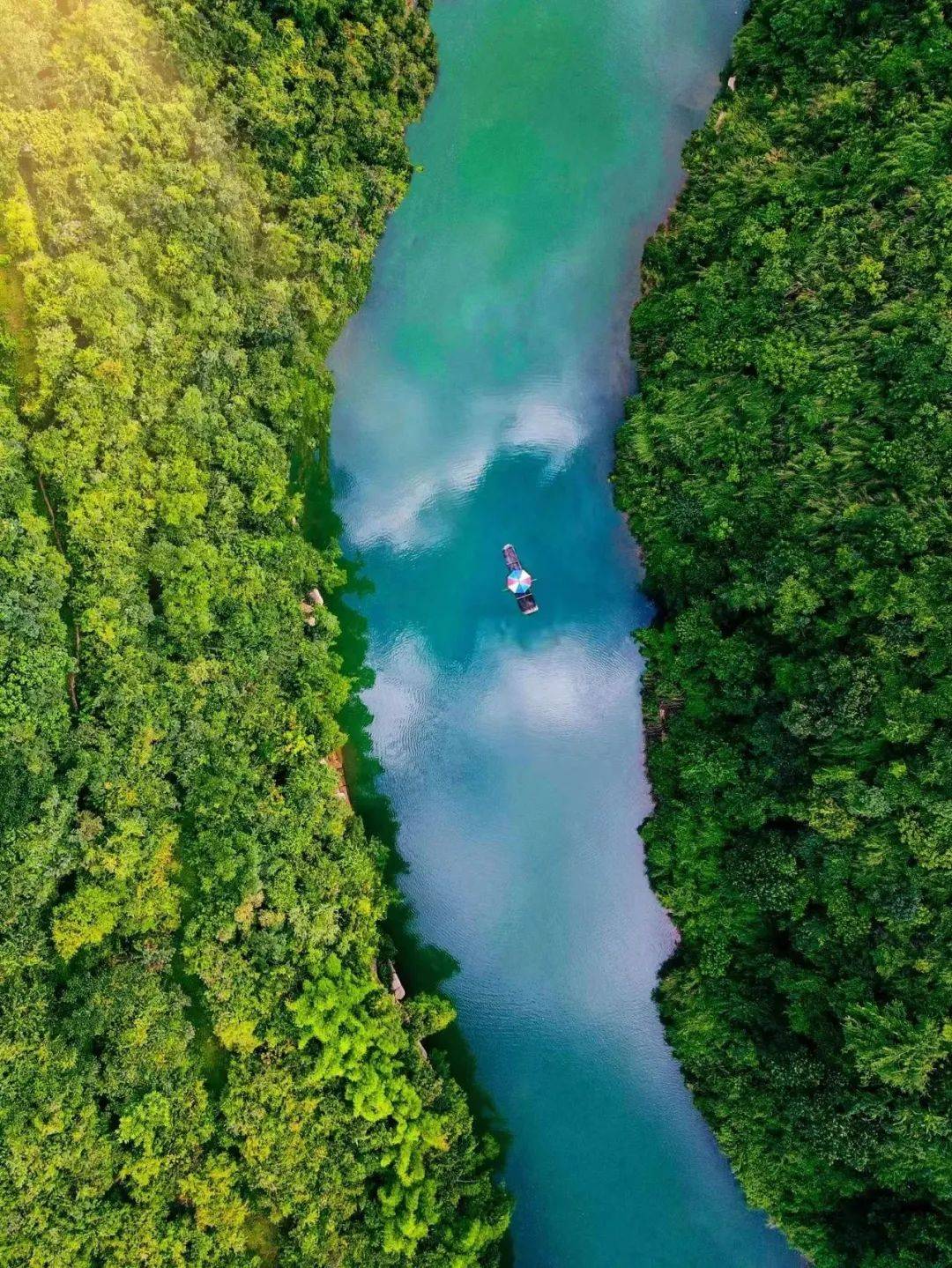 作为地球同纬度上绝无仅有的喀斯特森林,拥有“地球腰带上的绿宝石”之称,森林覆盖率高达90%,这里蓝到发绿的湖水,隔着屏幕都能感受到扑面而来的清凉!