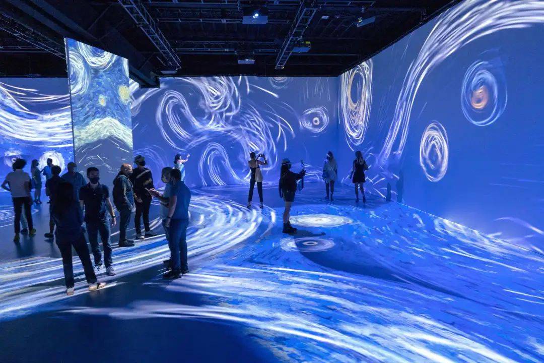 首先,两者的区别主要在于设备展示画面的方式。在“万物皆可沉浸”的市场环境下,LED显示屏与投影所发挥的作用是将场景重塑或衍生。LED作为大型直显屏幕,在文旅产业中的应用形式十分丰富,裸眼3d,异形屏等视觉造物成了独立景点。屏幕直显可以做到更加精细直观地展示画面,整体画面的色彩浓度、轮廓细节、变化效果都更加逼真,结合多块LED显示屏幕营造出一个沉浸式仿真演示环境,让游客在虚拟和现实交融的物理空间进行互动性交流,配合其他布置可以给予游客更加丰富新颖的感官体验。例如中国大运河博物馆的大型沉浸式古代场景,让观众回溯千年的历史;“知识展示+密室逃脱”的互动体验,让观众在游戏的乐趣中获得个性化的文化教育体验;利用LED创意大屏+全息投影打造360°多媒体循环剧场,让观众在多维的空间中全面感知文化生命力。