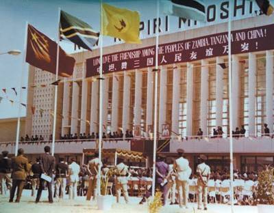 1976年7月14日,中、坦、赞三国政府在赞比亚新卡皮里姆波希举行坦赞铁路交接仪式。