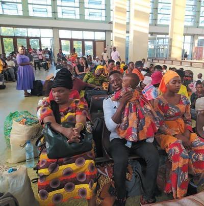 乘客在达累斯萨拉姆火车站候车大厅候车。