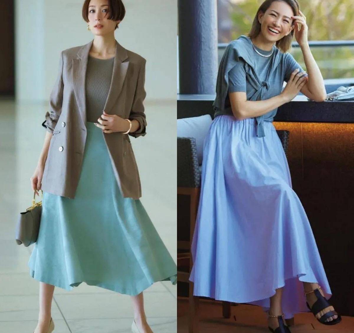 裙子是娇小的人最纠结的一件单品。他们总认为款式太长就会显得矮。但实际上,无论长度是在膝盖以下、到达小腿还是到达脚踝,最重要的是选择A字形状。太窄或太大,都没有美感。
