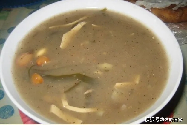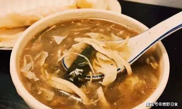饣它汤,古称雉羹,是徐州的名片,它以鸡汤为基础,加上麦片、面筋、胡椒粉、海带等熬煮,鲜香浓稠,入口鲜辣又开胃。