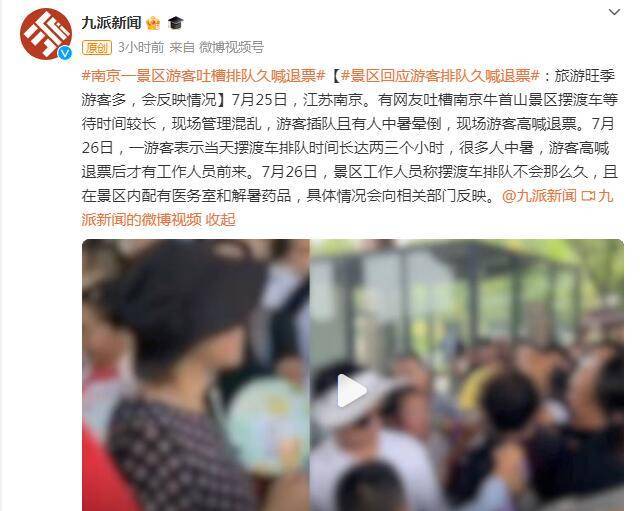 原标题:景区回应游客排队久喊退票:旅游旺季游客多,会反映情况
