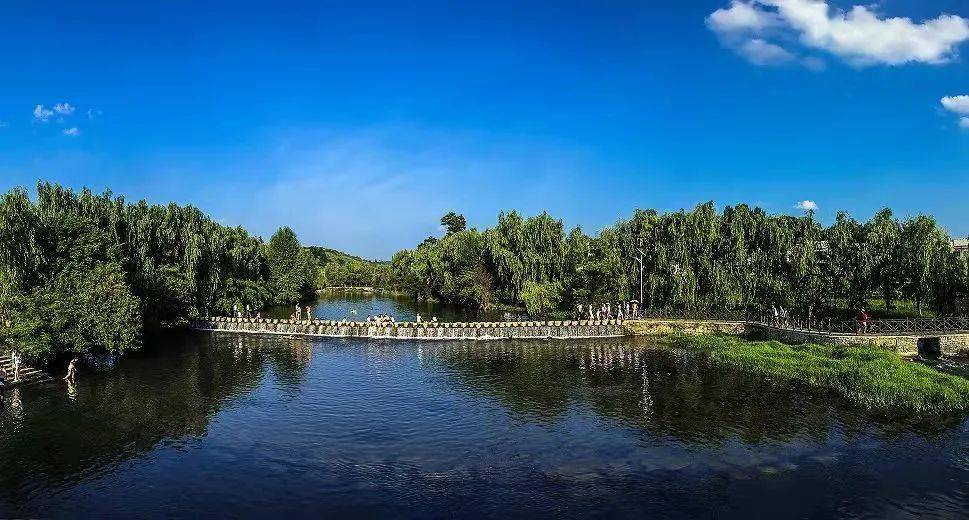 文姝河河水清澈,水草丰茂、鱼虾成群,河岸边垂柳依依,翠竹青青,山水相拥,曲径通幽,水光潋滟。