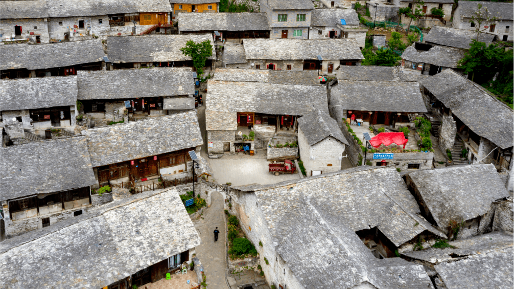 走进阿歪寨,青石板铺就的道路远处延伸,三国元素的房屋屹立在道路两旁,整洁干净的村庄环境让人眼前一亮。