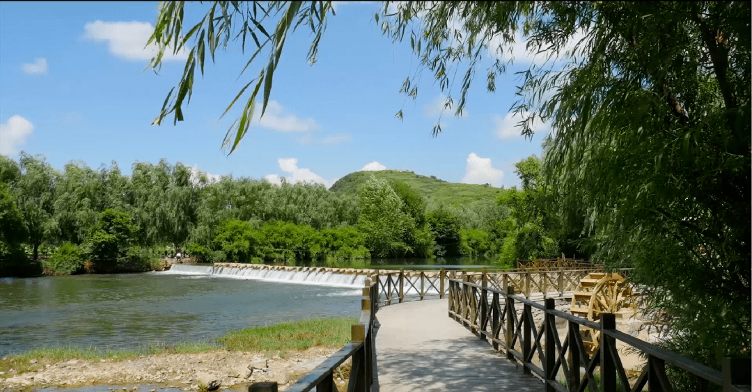 村前碧水翠岸、桥梁流水、栈道濒河、亭榭掩映,水转风车更是体现了其乡情水韵、水墨山村的清新迷人之美。
