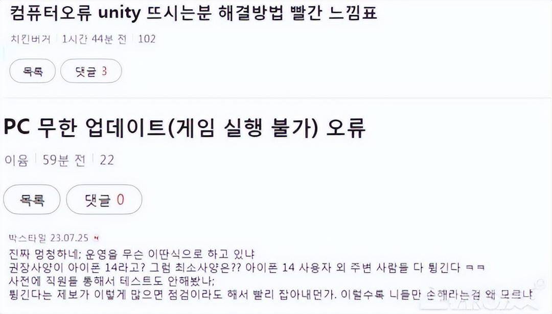 PC端有很多玩家反映电脑会出现了运行错误,更新卡死等,甚至出现一直被杀毒软件警告删除的情况。就连一向稳定的iPhone也出现各种问题,有玩家就抱怨身边的人除了iPhone14外,其他型号的iPhone都玩不了。