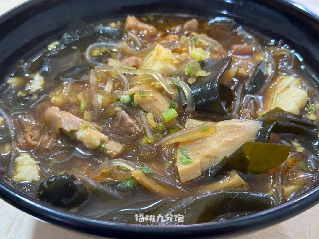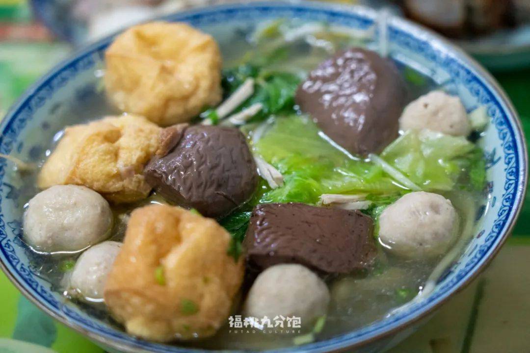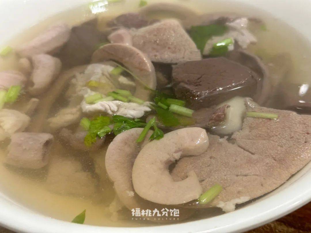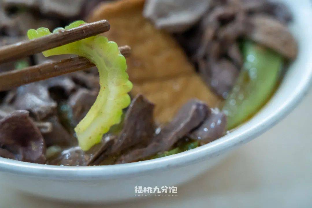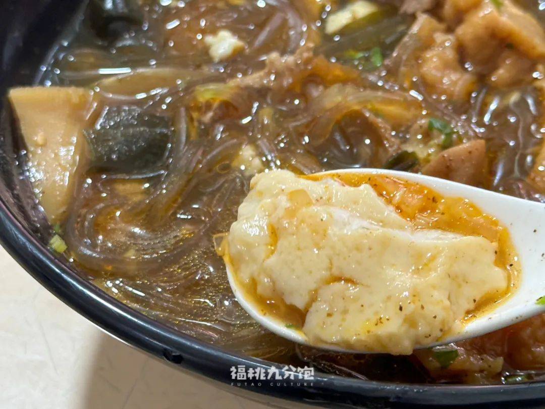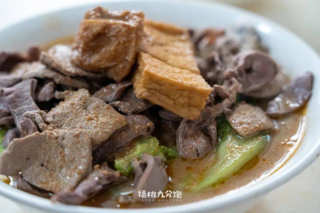 「正牌豆纤」是少数能在漳州市区吃到的豆纤面店,它家的标配是鸭血和一些面线点缀。