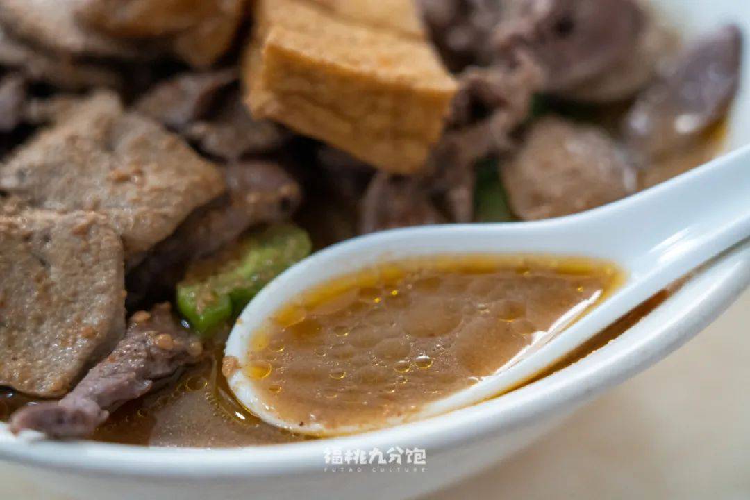 ▲「鸭血肉丸豆干汤」是干拌面的标配。