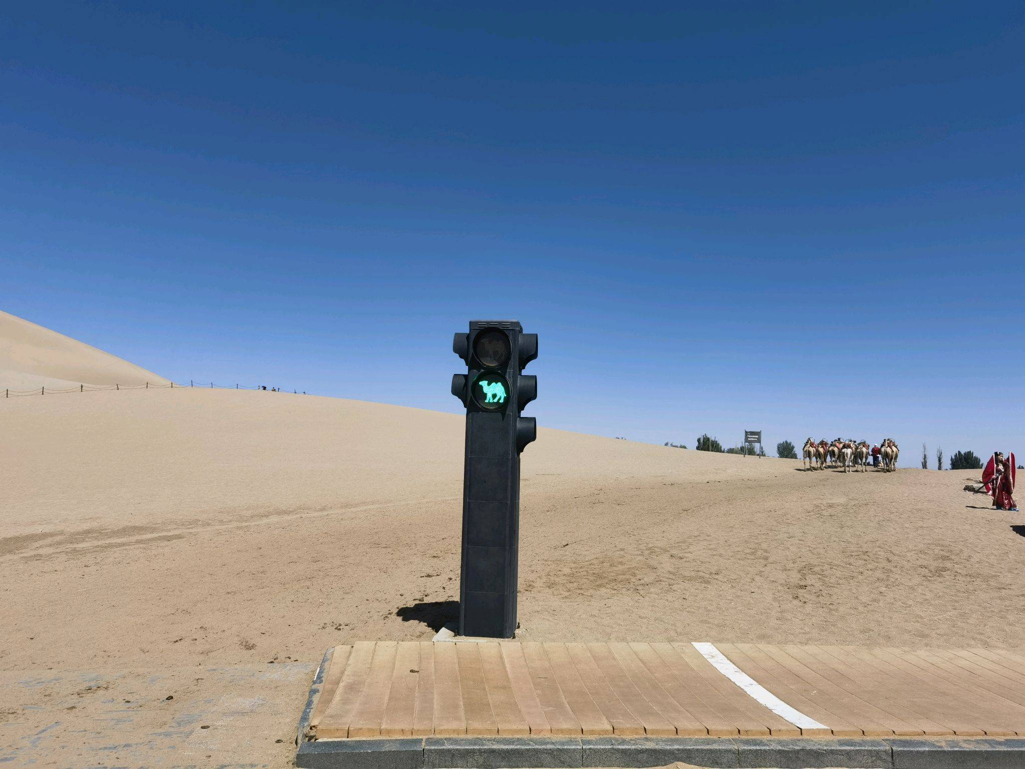居然都有骆驼绿灯,第一次看见。人行道与驼道交叉的地方才有这个灯