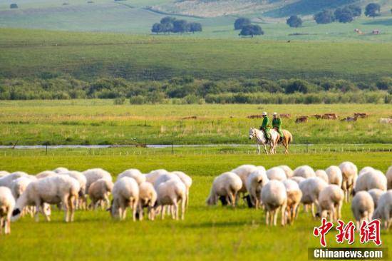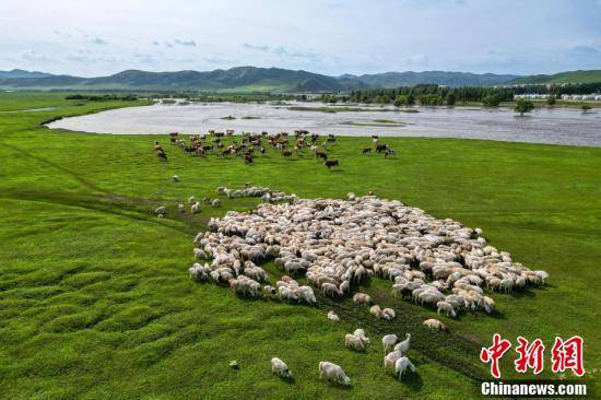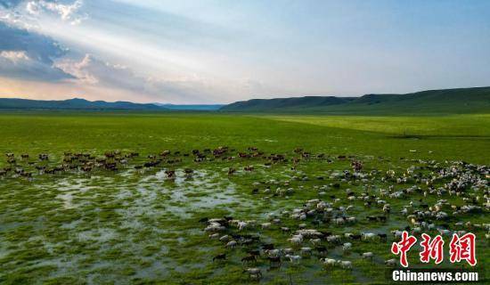 夏日的乌兰毛都草原上牛羊成群。(无人机拍摄)毕力格摄