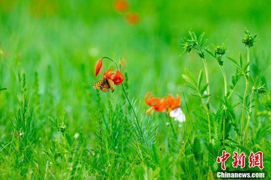 火红的萨日朗点缀着嫩绿的草原。毕力格摄