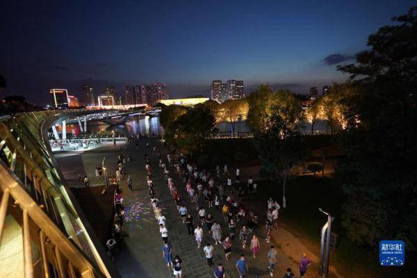 人们在太原市汾河景区跳舞(7月25日摄)。
