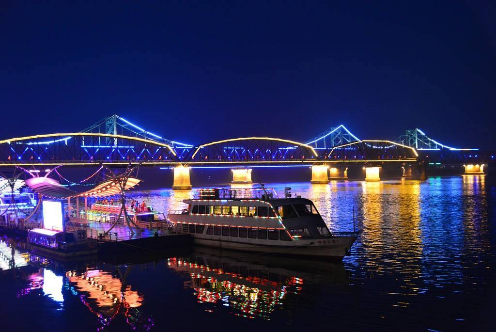 从安东老街出来,华灯初放,此时的鸭绿江畔灯火辉煌。