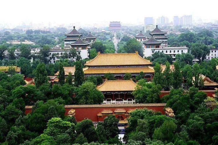 清顺治十二年(1655)改名景山,并不断在原有建筑基础上进行增建,乾隆时达到巅峰。景山的五峰上各有一亭,中峰上的叫万春亭,西两峰分别有富览亭、揖芳亭,东两峰为周赏亭、观妙亭。以前没有高楼大厦的时候,景山是北京城制高点,站在万春亭可俯瞰全城景色;如今除了挡住视线的高楼之外也能看个大概,起码儿能俯视故宫全貌。