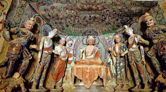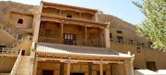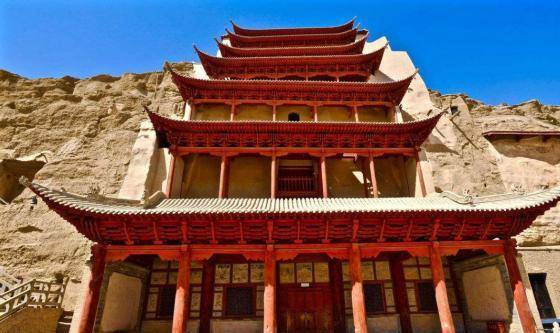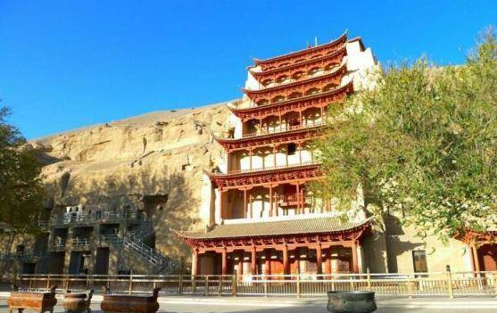 到了莫高窟,可以看到窟前的九层楼,本来刚开始建造的时候不是九层而是四层,在晚唐时期又将四层建成了五层,宋初又将此楼重新修整,1935年将其建造成九层楼。