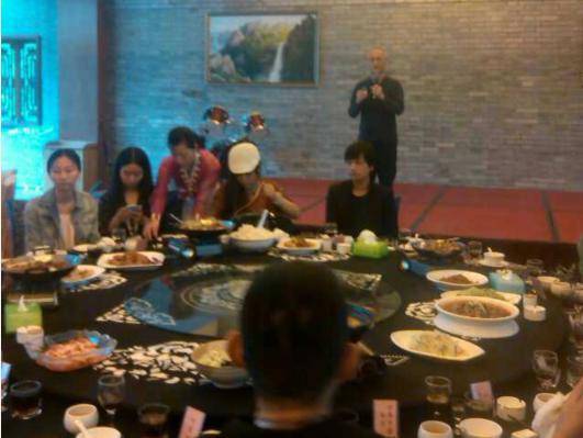 我国著名文化批评家、传媒大咖张一一(右一)在张家界国际乡村音乐节答谢宴。