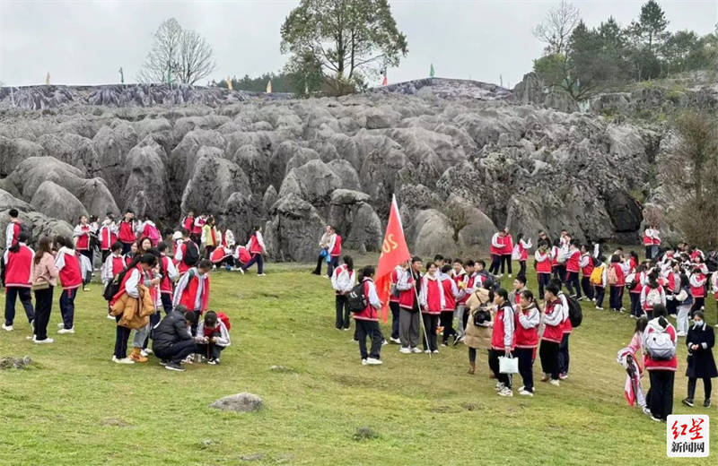 ▲香山中学在石海景区开展研学游 图据:兴文文旅