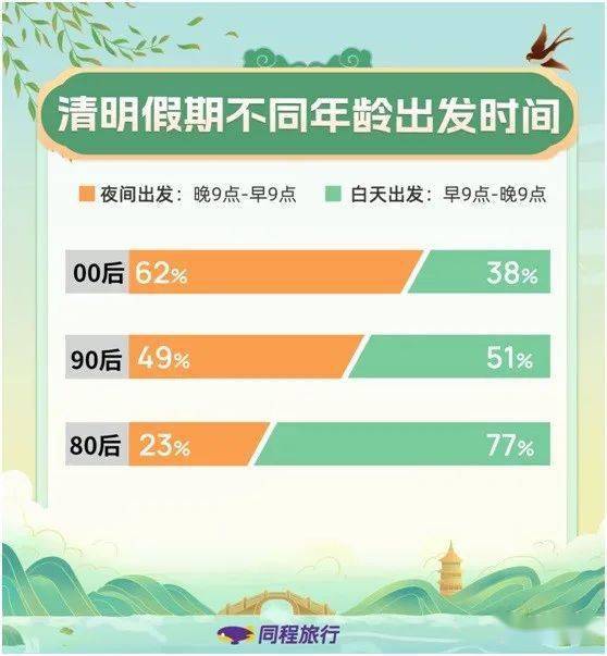 清明假期“特种兵”旅游成为更多年轻游客的选择。数据显示,4月4日至5日,同程旅行平台上,有62%的00后游客选择了夜间(晚9点~早9点)出发的航班和火车。相比之下,更加“佛系”的80后游客中,选择夜间出发的人数占比仅23%。
