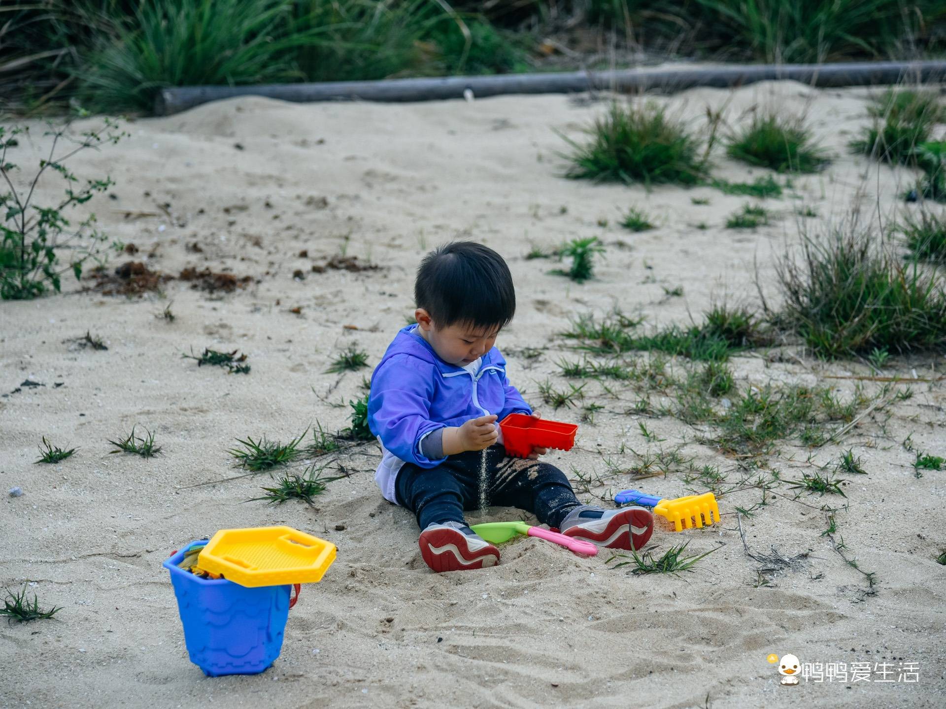 小孩子的快乐就是这么简单,1周七的牛牛同学迷上这片沙地,玩沙玩的不亦乐乎。