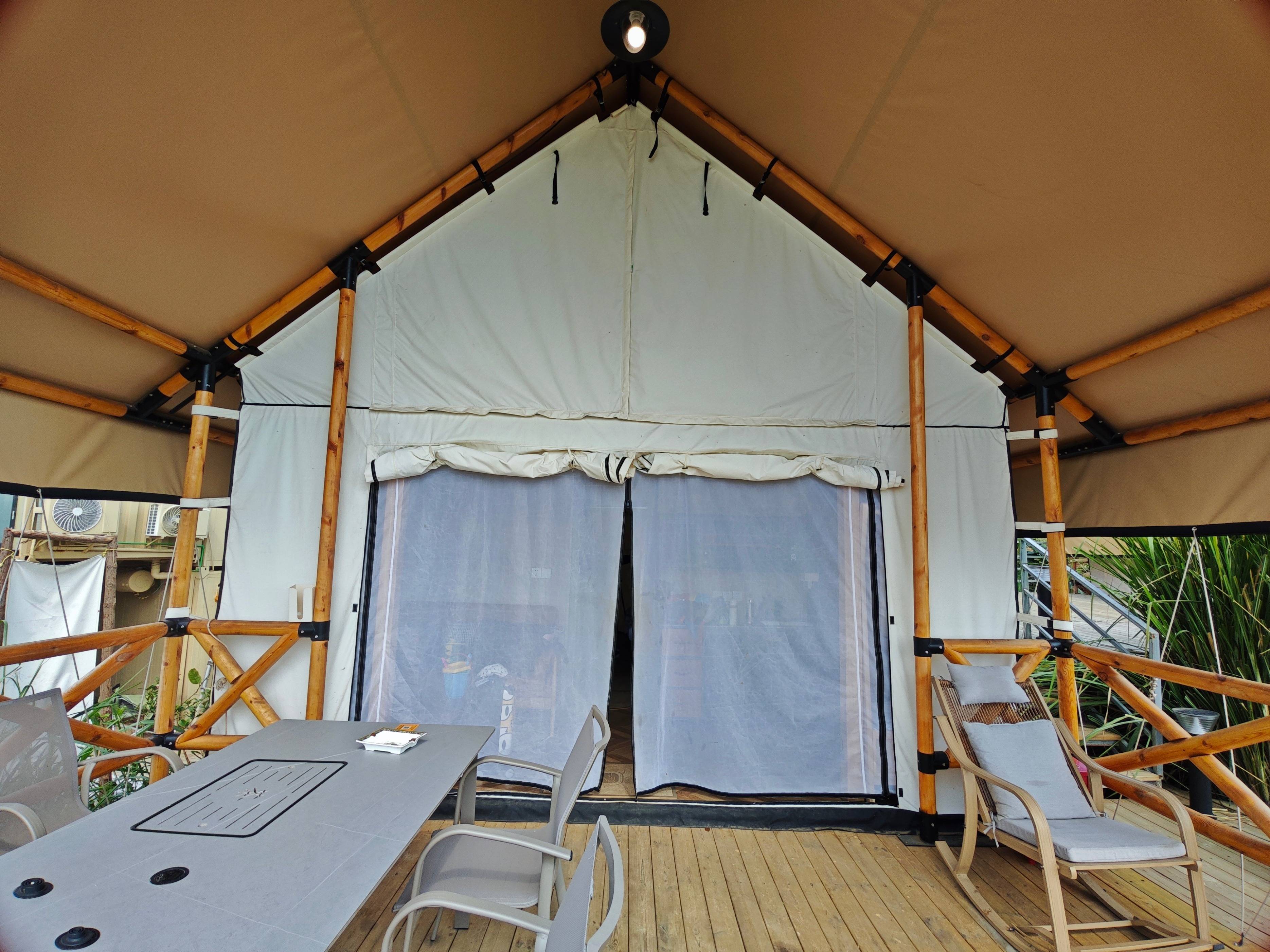 这回我们住的是野奢帐篷阁楼房,外观是个大帐篷哦,这真的太酷了。帐篷竟然还有阁楼,适合一家子住。当然这个帐篷跟我们传统看到的露营帐篷可不一样,非常牢固,野奢氛围感拉满了。
