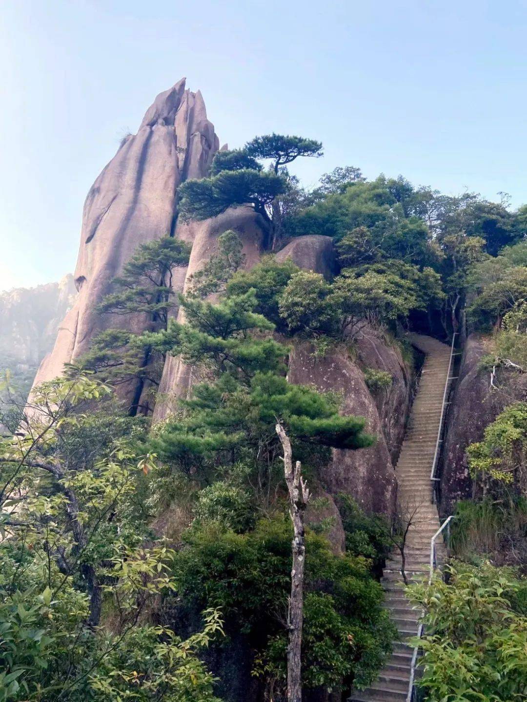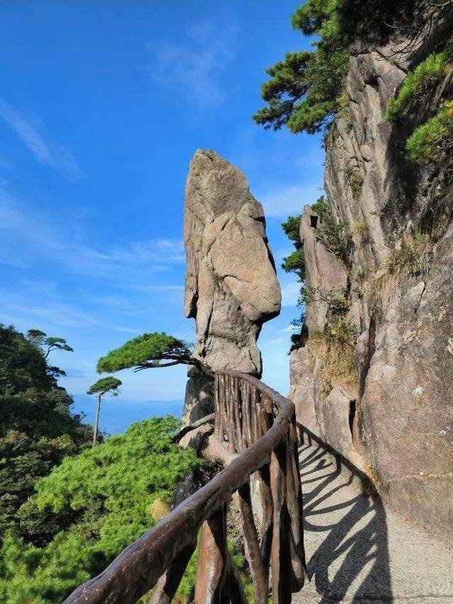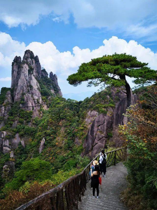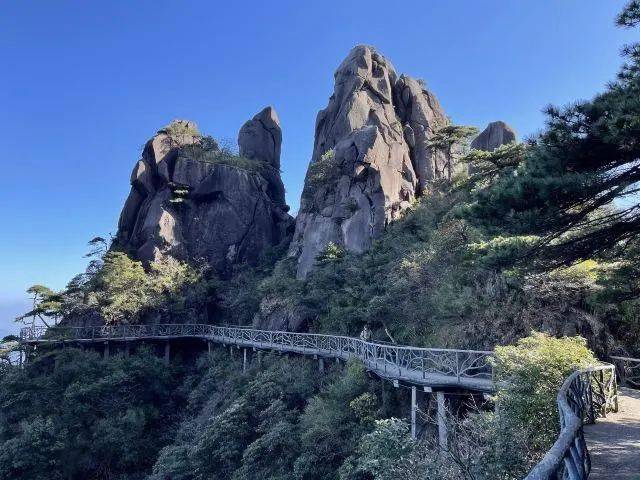 然后游览【南清园景区】 三清山有东险西奇,北秀南绝,中峰巍峨之说。大部分绝景均集中于此。整个景区两上两下。路途以台阶为主。沿途可欣赏:神龙戏松,一线天,龙凤呈祥,玉女开怀,东方女神,巨蟒出山,狐狸啃鸡,狸猫待鼠等等。【万寿园景区】万寿园景区位于三清山南麓,以祥寿文化为主题的景区。万景区内奇峰巧石天然浑成,仙峰秀色中蕴涵着中国传统祥寿文化和道家修身养性之道。