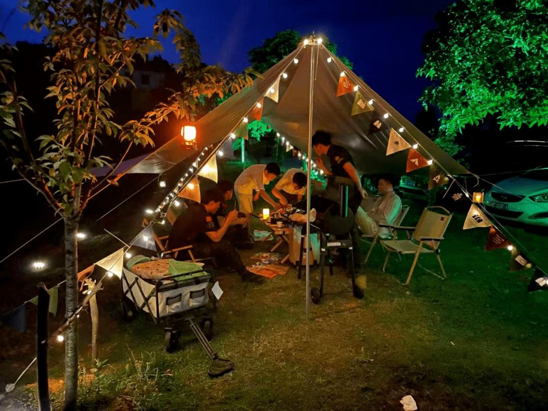 提前准备好食材,生好火,随着滋滋的烤肉声,烤肉社交正式开始,并且特别适合夜晚,人越多越好玩。