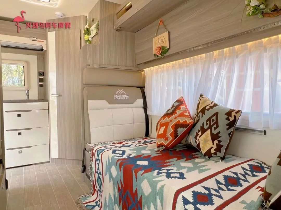 等到玩累了,玩尽兴了,夜宿房车,或者去营地的帐篷里住宿(帐篷住宿费用需自理哦),感受虫鸣和花香,香甜的梦里肯定都是大片的金黄色黄海。等到第二天,去镇上吃过当地特色的早饭,就出发去下一站吧!